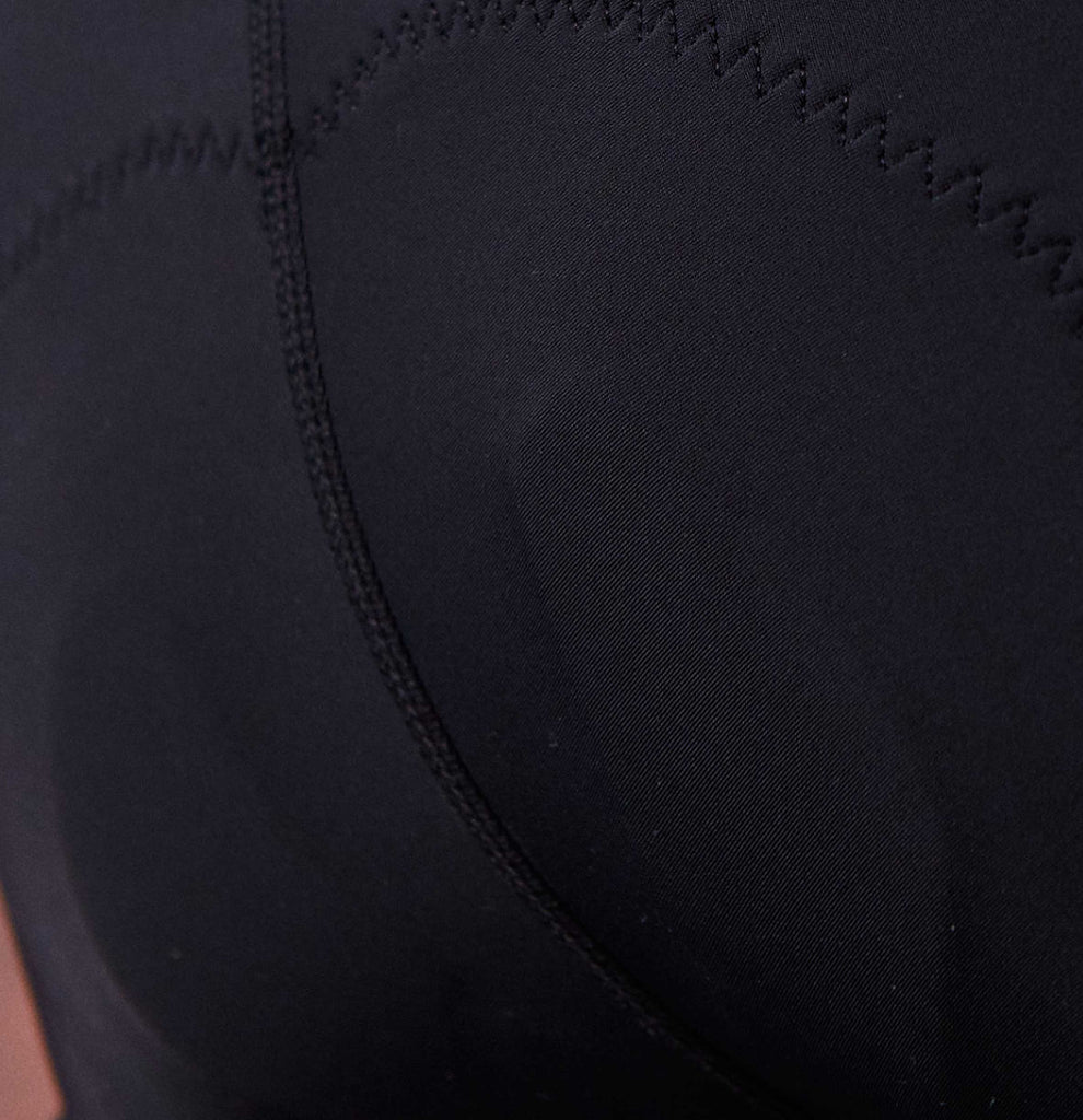 High-cut waist bands and flat lock seams improve rider comfort and reduce chafing.