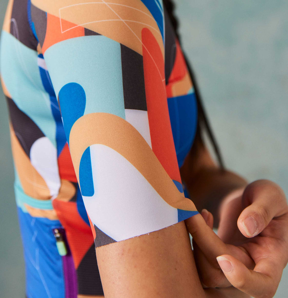 The Momentum Jersey is our celebration of flow state. In our signature playful style, our race-fit Momentum Jersey is part of an Artist Series collection that promotes budding creativity and expression in the world of cycling. Logo, designed in pop colours, is our dedication to the fearless, bold, and brave women out there. Constructed with UV-protected lightweight and breathable 4-way stretch fabrics with high-wicking properties, the jersey’s front panel comprises a smooth fabric to increase aerodynamics while the main back panel fabric has a mesh layup to facilitate airflow and prevent overheating especially on hotter days under the sun. Raw-cut sleeves have been added to reduce abrasions, increase aerodynamics, and provide a smooth glove-like fit for race-day. Our jerseys are also fitted with customised YKK semi-auto lock sliders for increased grip and locking in motion.